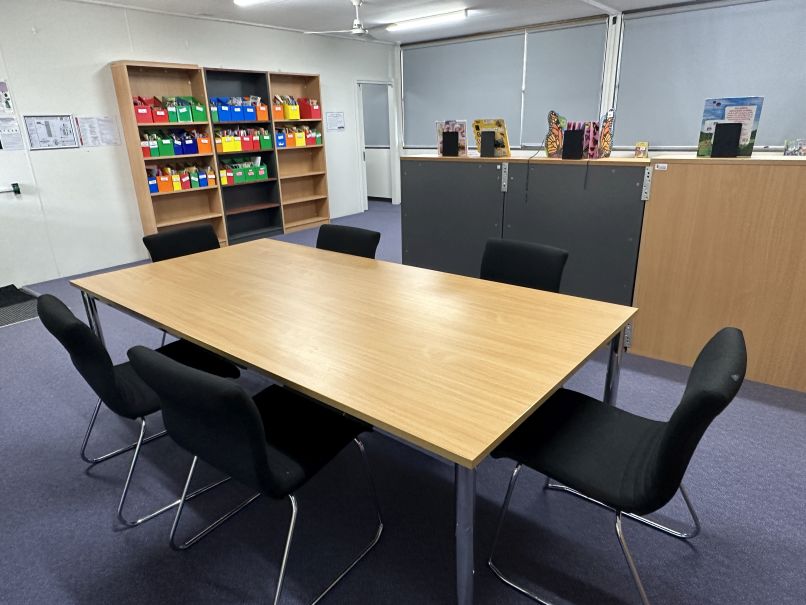 A work table with comfortable seating.