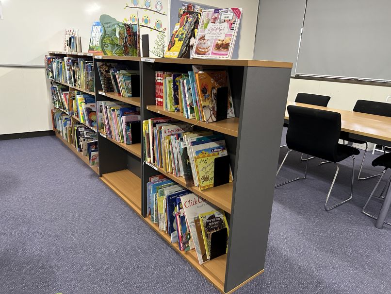 Bookcases of story books and readers.