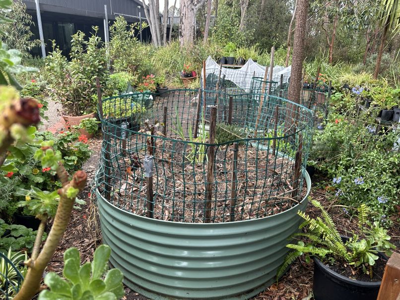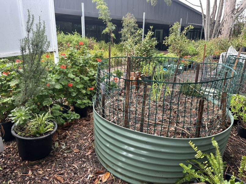 The raised garden beds made from cut down water tanks were relocated from the former horticulture centre. They make gardening a user-friendly experience for all gardeners.